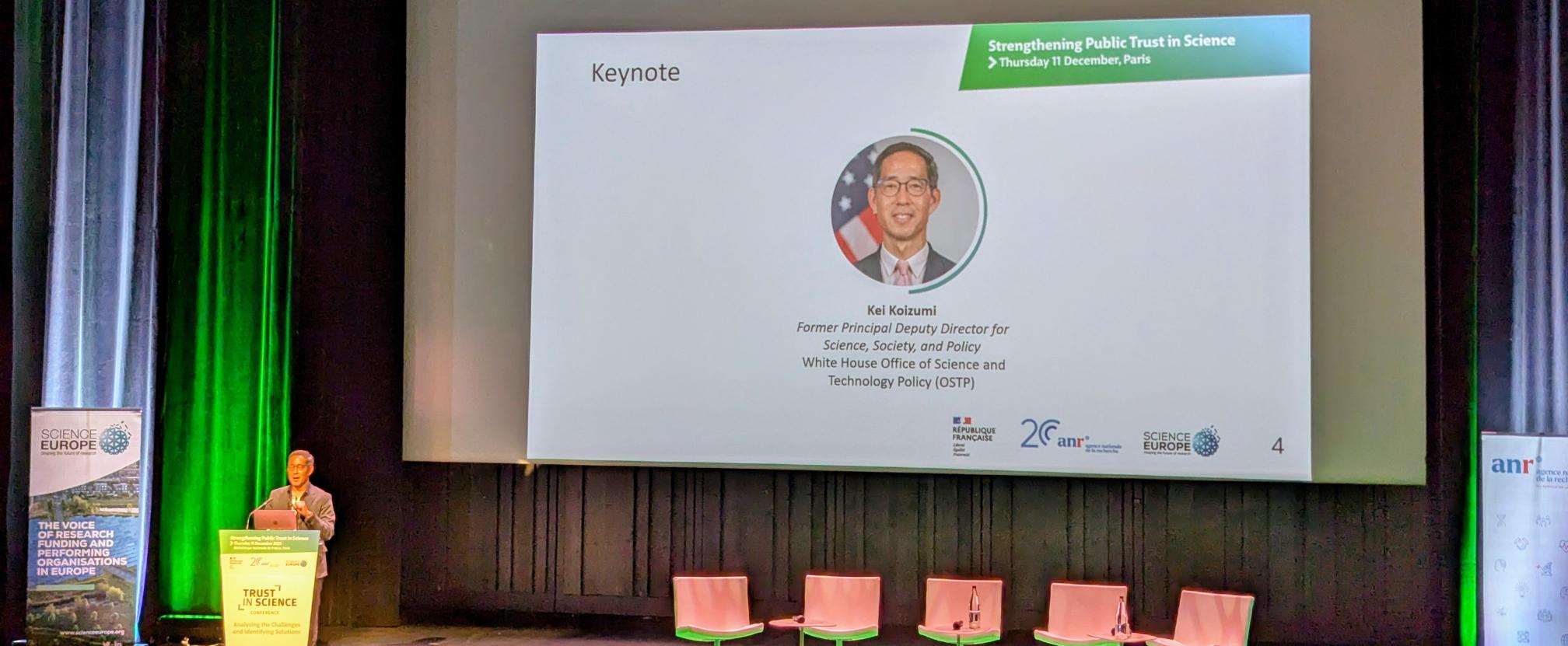 In a powerful keynote, Kei Koizumi offered an alarming assessment of developments in the United States, where deliberate political interference, widespread disinformation, and eroding information integrity are undermining confidence in public institutions and, indirectly, in scientific evidence. Although general trust in science remains comparatively high, deep divides between societal groups persist and increase, and trust in policy decisions informed by scientific advice has weakened. While the Covid-19 pandemic initially seemed to demonstrate the life-saving value of science, policy responses often had the opposite effect and fuelled polarisation.